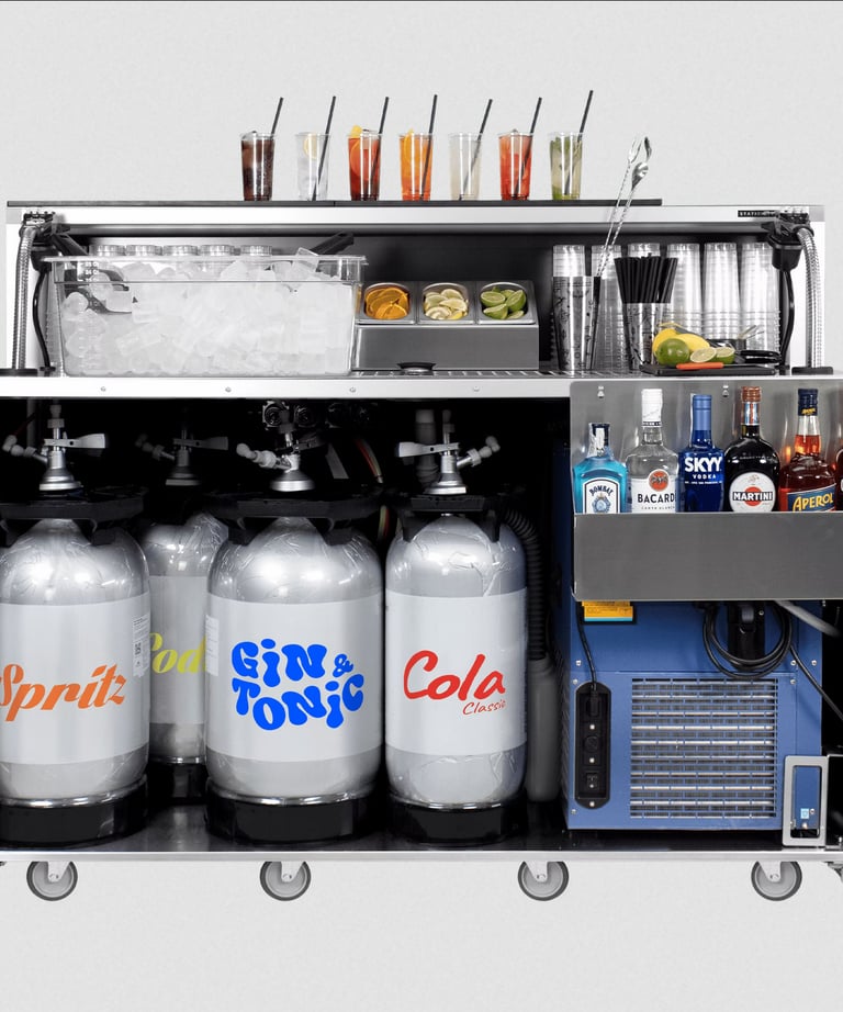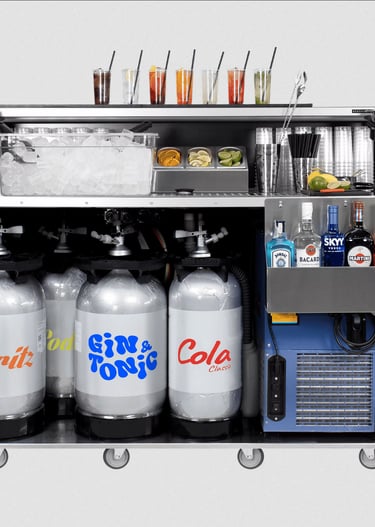 The first Mobile Soda Gun Station. Dispense soft drinks and pre-batched cocktails from kegs with no mixing errors. Discover the Portable Bar with Soda Gun.